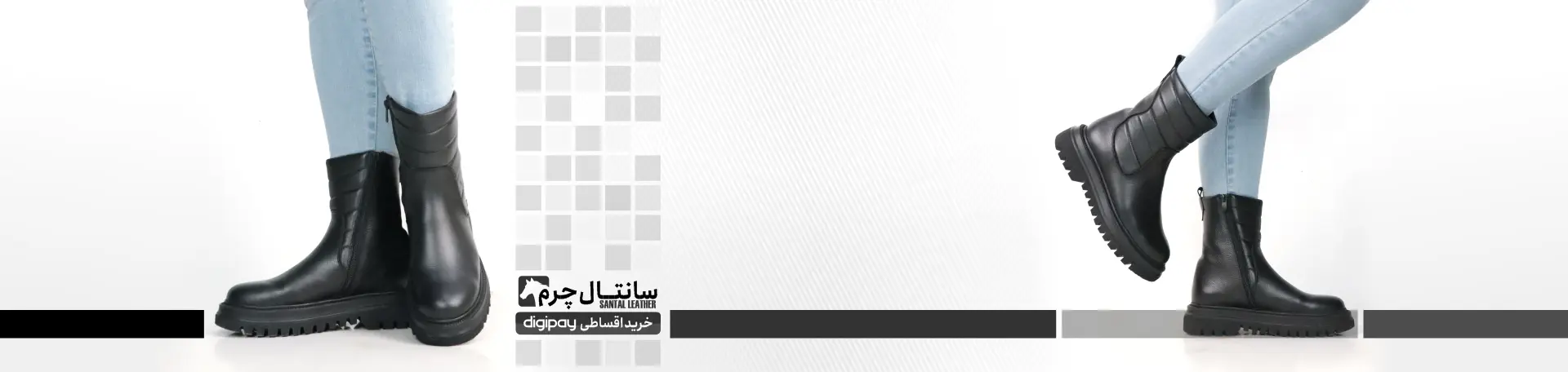 بوت چرم زنانه مدل مربعی