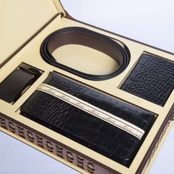 - بستهبندی ست انتخابی شما باید شیک و زیبا باشد. به طوری که گیرنده در ابتدای امر که هدیه شما را دریافت میکند، متوجه شود محصول گرانقیمتی را برای او در نظر گرفتهاید. محصولات چرمی ذاتا نفیس هستند؛ با این حال بستهبندی زیبا آنها را نفیستر نیز میکند.
