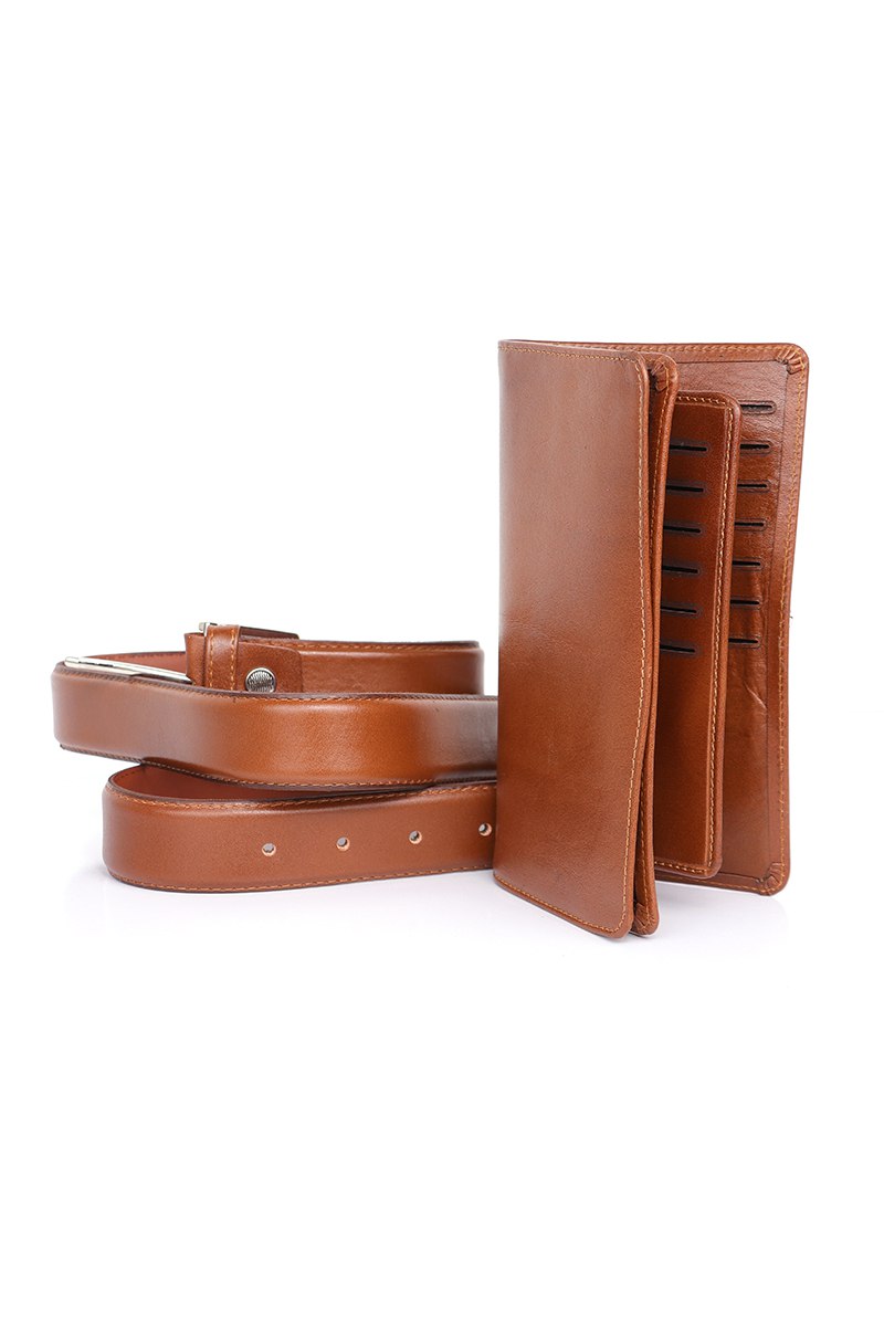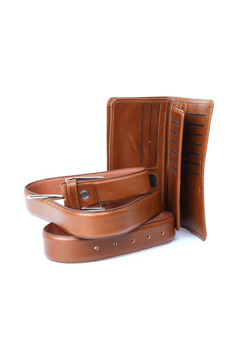 ست 2 تیکه چرم کیف پول وکمربند