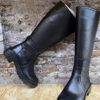 بوت چرم زنانه پاشنه کوتاه و بند دار مدل اﻓﺸﺎن