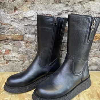 بوت چرم زنانه بدون پاشنه زیپ دار مدل سها